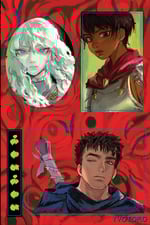 š features Casca, Guts, Griffith, and Puck from Berserk.